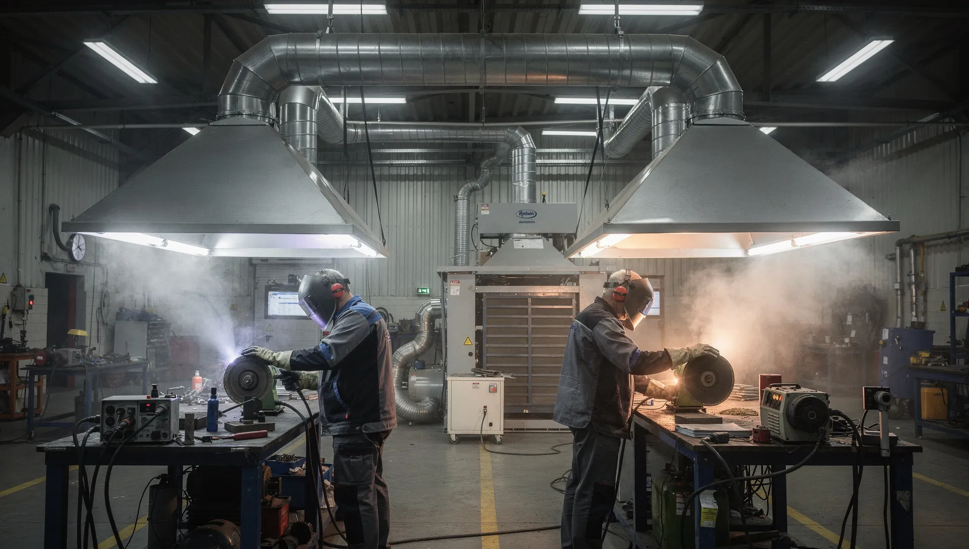 È qui che il richiamo del D.Lgs. 81/2008 smette di essere formula e torna sostanza: bisogna ridurre lo sviluppo e la diffusione di polveri e fumi e impedire il rientro degli inquinanti nell’ambiente di lavoro. Non dice “aspirate un po’ da qualche parte”. Dice di evitare che l’inquinante si sparga e torni dove non deve stare.